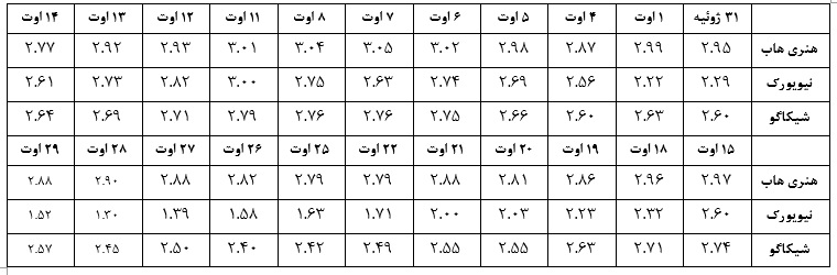 جدول 4: قیمت آتیهای گاز طبیعی در بورس نیویورک (هنری هاب)– قیمت بسته شده