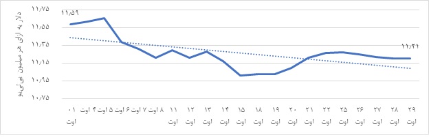 جدول 1 : روند تغييرات قيمت های تك محموله گاز طبيعي بازار آمريكا طي دوره 31 ژوئیه الي 29 اوت 2025- (دلار در هر ميليون بي.تي.يو)